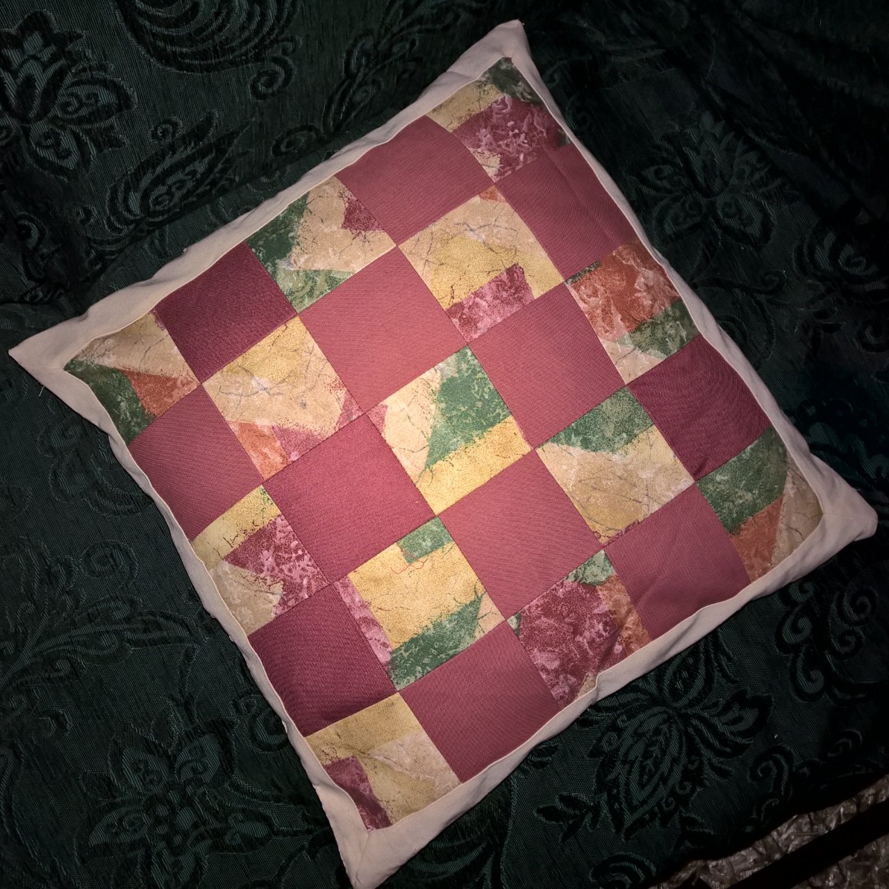 Alun perin suunnittelin lapselle peitettä, mutta nyt riitti into enää sohvatyynyyn.